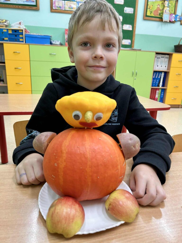 Dodatkowo okazało się, że warzywa i owoce można wykorzystać nie tylko do jedzenia, ale także do kreatywnych zabaw plastyczno – technicznych. ![]()