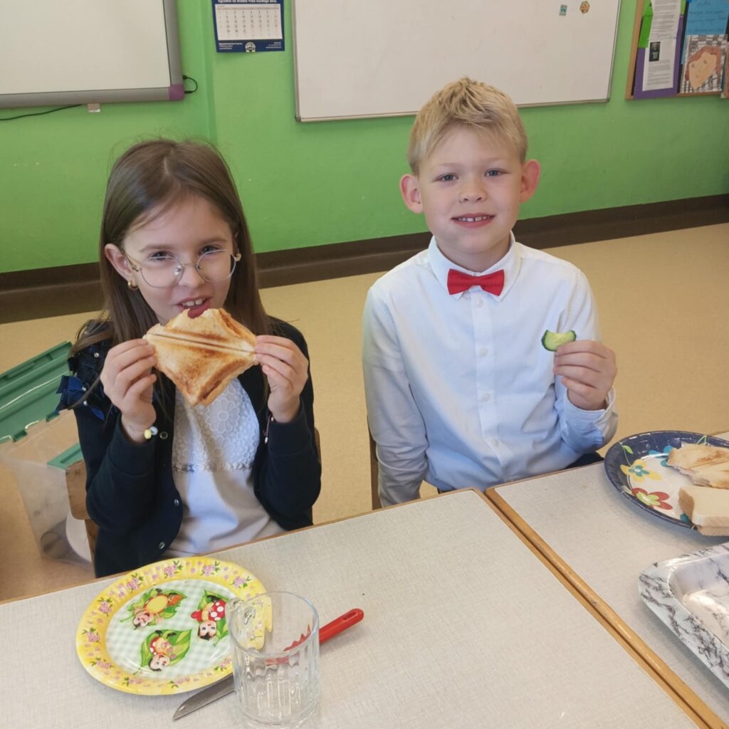 Dnia 07.11.2025. w klasie II i III odbyło się wspólne śniadanie. Dzieci samodzielnie przygotowywały tosty z serem, szynką i warzywami. Wszyscy dbali o czystość i bezpieczeństwo podczas pracy![]()