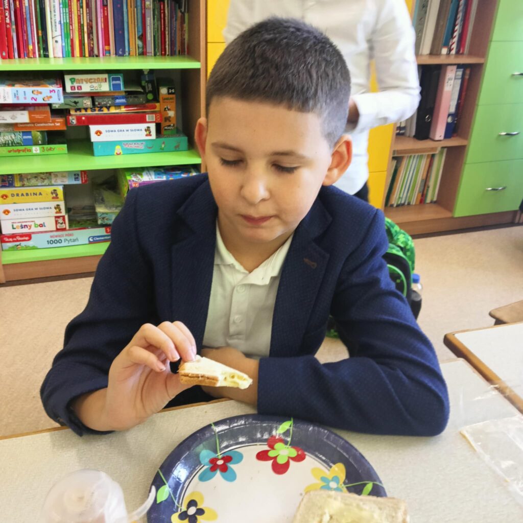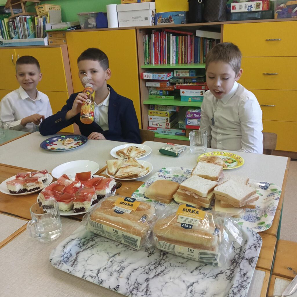 Po przygotowaniu śniadania przypomnieliśmy sobie zasady kulturalnego zachowania się podczas posiłku – mówimy „proszę”, „dziękuję”, nie rozmawiamy z pełnymi ustami .