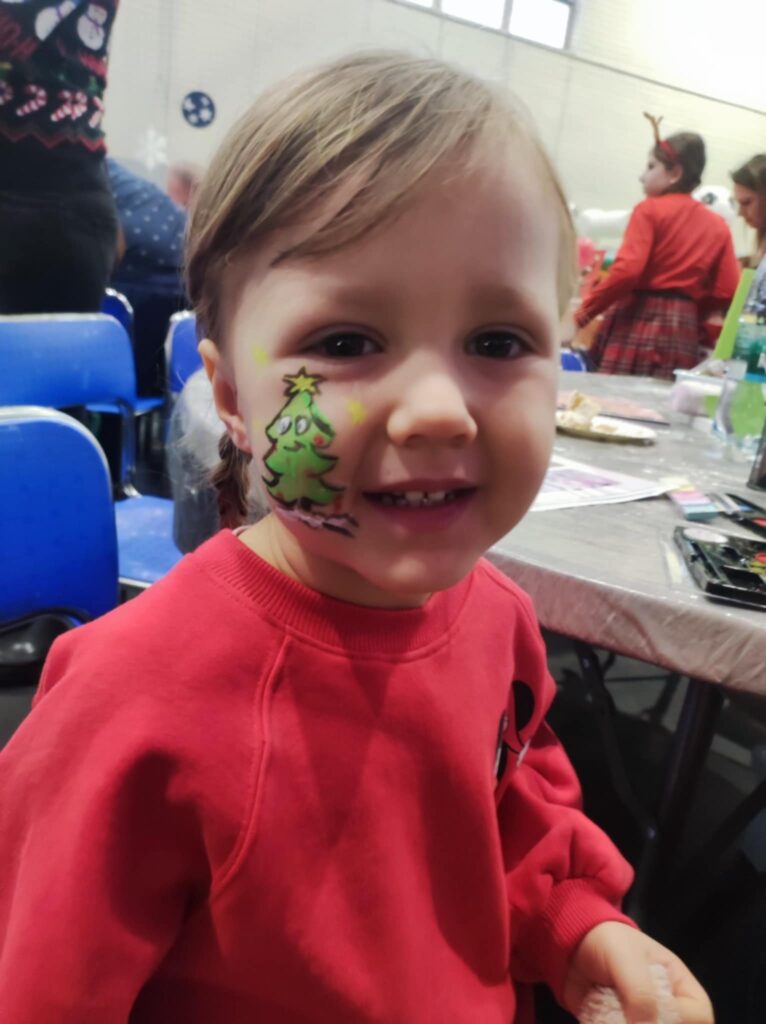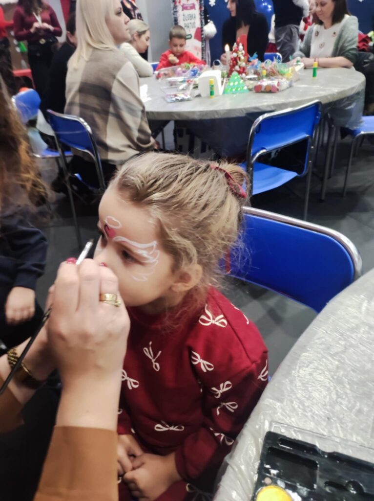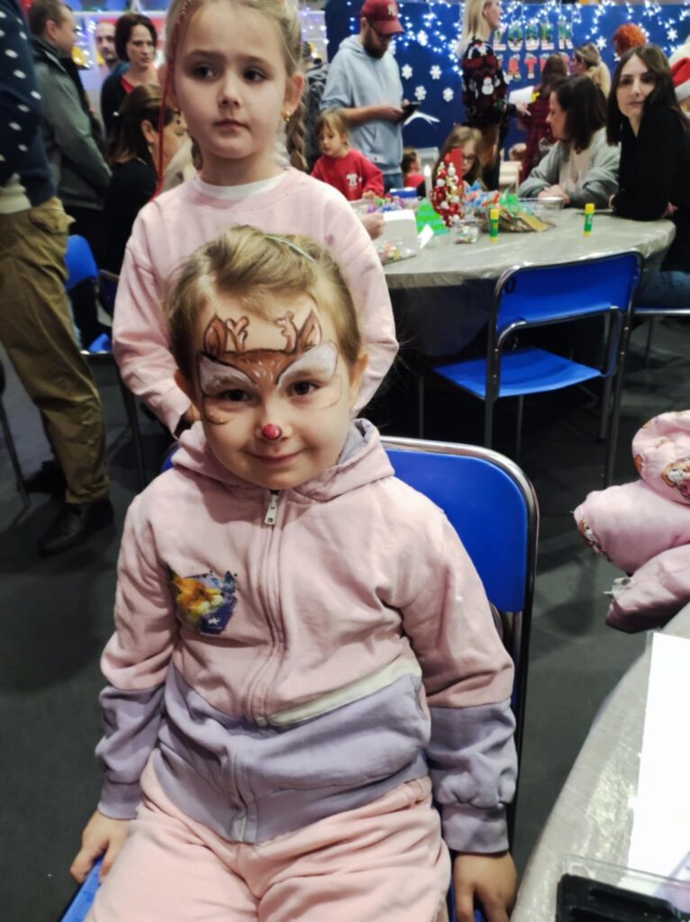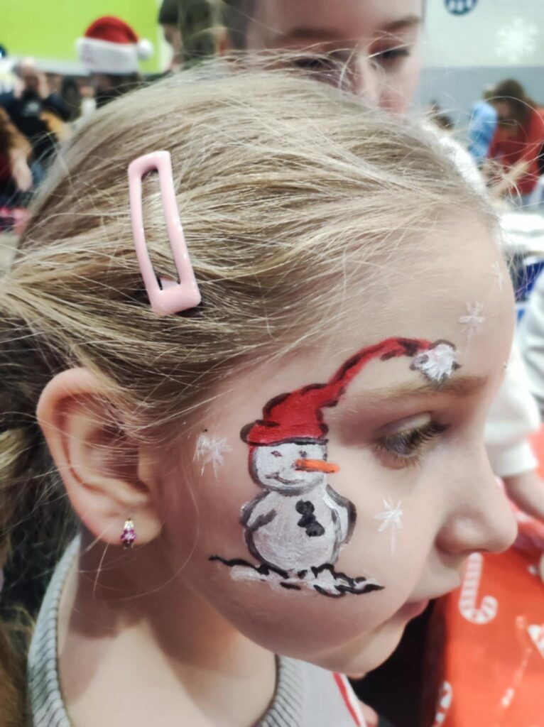 Malowanie twarzy – dzięki naszej niezwykle uzdolnionej pani Izie dzieci zamieniały się w renifery, elfy i inne świąteczne postacie.