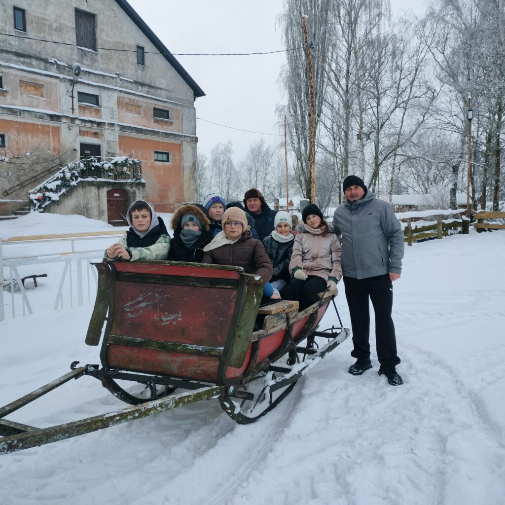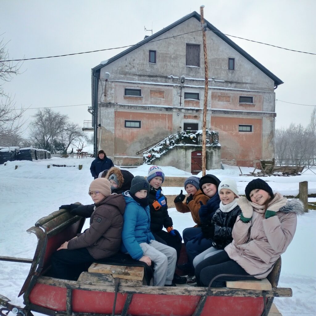 14 stycznia, pod czujnym okiem nauczyciela w-f, Pana Marka Iwanowskiego, nasi uczniowie wybrali się na prozdrowotny spacer do Ośrodka Rehabilitacji Konnej w Kisielnicy. Celem wyjścia była nie tylko poprawa kondycji, ale także integracja zespołów klasowych otoczeniu pięknej natury. Gdy dotarliśmy na miejsce, czekała na nas prawdziwa zimowa przygoda! Dzięki uprzejmości gospodarzy ośrodka, zamiast standardowych ćwiczeń, uczniowie wzięli udział w wyjątkowej przejażdżce saniami co sprawiło, że lekcja w-f na długo zapadnie wszystkim w pamięci.