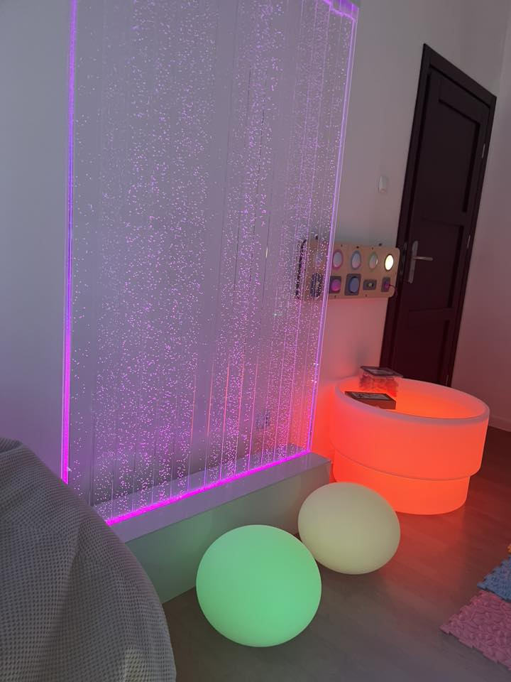 Nasza sala doświadczania świata to wyjątkowe miejsce stworzone z myślą o wszechstronnym rozwoju dzieci. To bezpieczna, przyjazna przestrzeń, w której poprzez światło, dźwięk, dotyk i ruch dzieci poznają świat w swoim tempie i zgodnie ze swoimi potrzebami.
