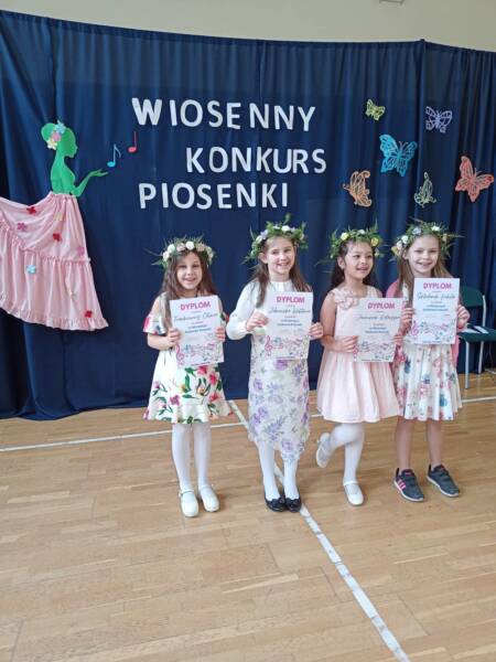 Uczennice klasy II (19.04.2023) wzięły udział w Wiosennym Konkursie Piosenki w Szczuczynie. Oliwia Frąckiewicz oraz Katarzyna Jarominiak otrzymały wyróżnienia, zaś Wiktoria Żebrowska i Nikola Składanek upominki za udział. Gratulujemy Wam i nie przestawajcie śpiewać.